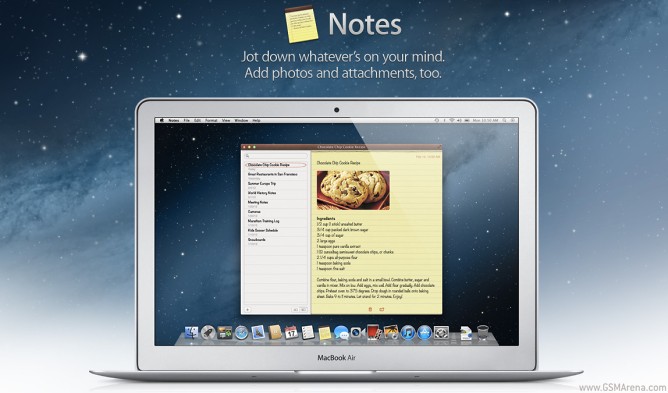 Again via a stand-alone app Apple has included Notes in Mountain Lion. Previously baked into the Mail app, Notes have been a bit hard to get to. Now, you can add pictures to your notes as well as pin them to the desktop, essentially making sticky notes.