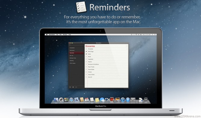 Reminders take part in OS X Mountain Lion too. They will receive their very own stand-alone app with the functionality intact. You can set up all sorts of reminders through it using its simple interface. Reminders was previously integrated into Calendar.