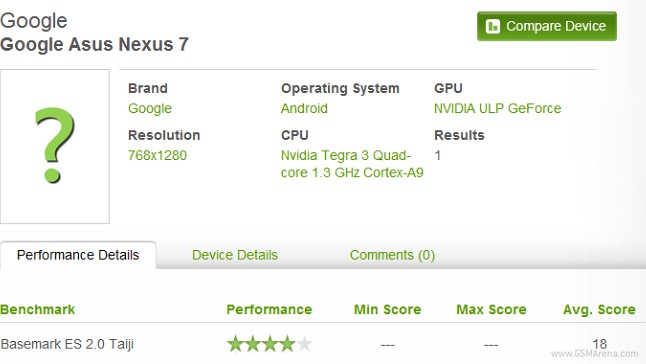 The info comes straight from Rightware’s Basemark ES 2.0 Taiji benchmark test, where the upcoming slate has stretched its four CPU legs, coortesy of NVIDIA’s Tegra 3 chipset. A 7″ display with with a 1280×768 pixels in resolution completes the leaked hardware picture.
