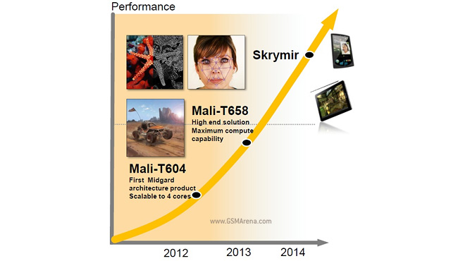 Still, the new GPU targets mid-range phones that will come out next year. For the high-end, ARM is working on the Mali-6xx line, which offers improved performance and general purpose computing on the GPU (think OpenCL).